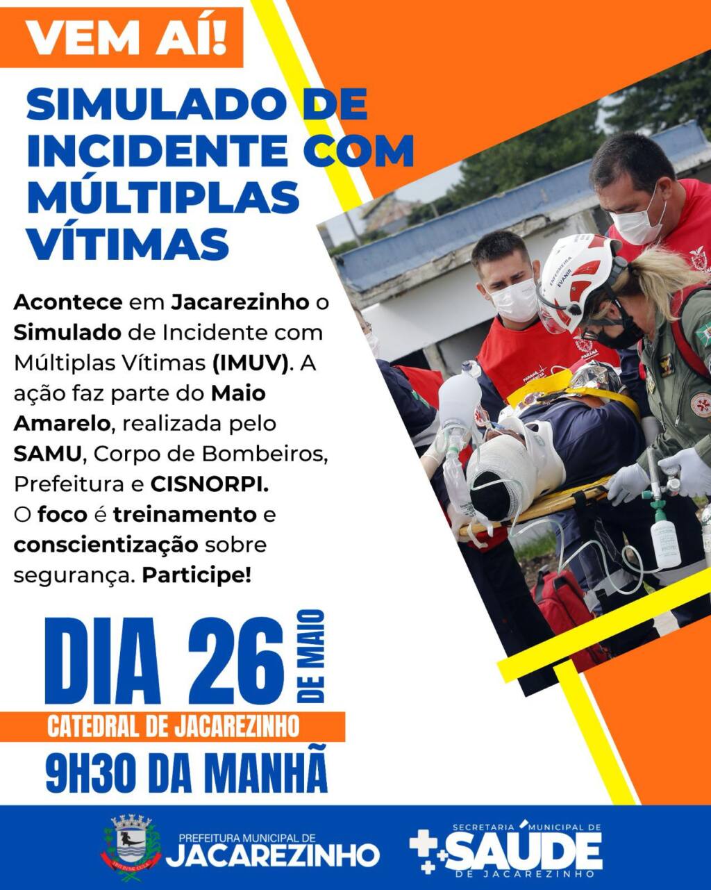 A cidade de Jacarezinho será palco de um importante exercício de conscientização e preparo neste domingo, dia 26 de maio. A partir das 9h30 da manhã, em frente à Catedral, acontece o Simulado de Incidente com Múltiplas Vítimas (IMUV), uma ação que integra o movimento Maio Amarelo, voltado à promoção da segurança no trânsito.