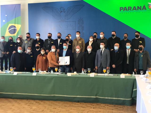 Participaram do encontro além do Governador e prefeitos, o secretário Chefe da Casa Civil, Guto Silva, o secretário de Estado de Desenvolvimento Urbano e Obras Públicas, João Carlos Ortega, o presidente da Assembleia Legislativa do Paraná, Ademar Traiano, e os deputados Luiz Claudio Romanelli, Alexandre Curi e Paulo Litro. Fonte: Assessoria / Foto: PMJ.